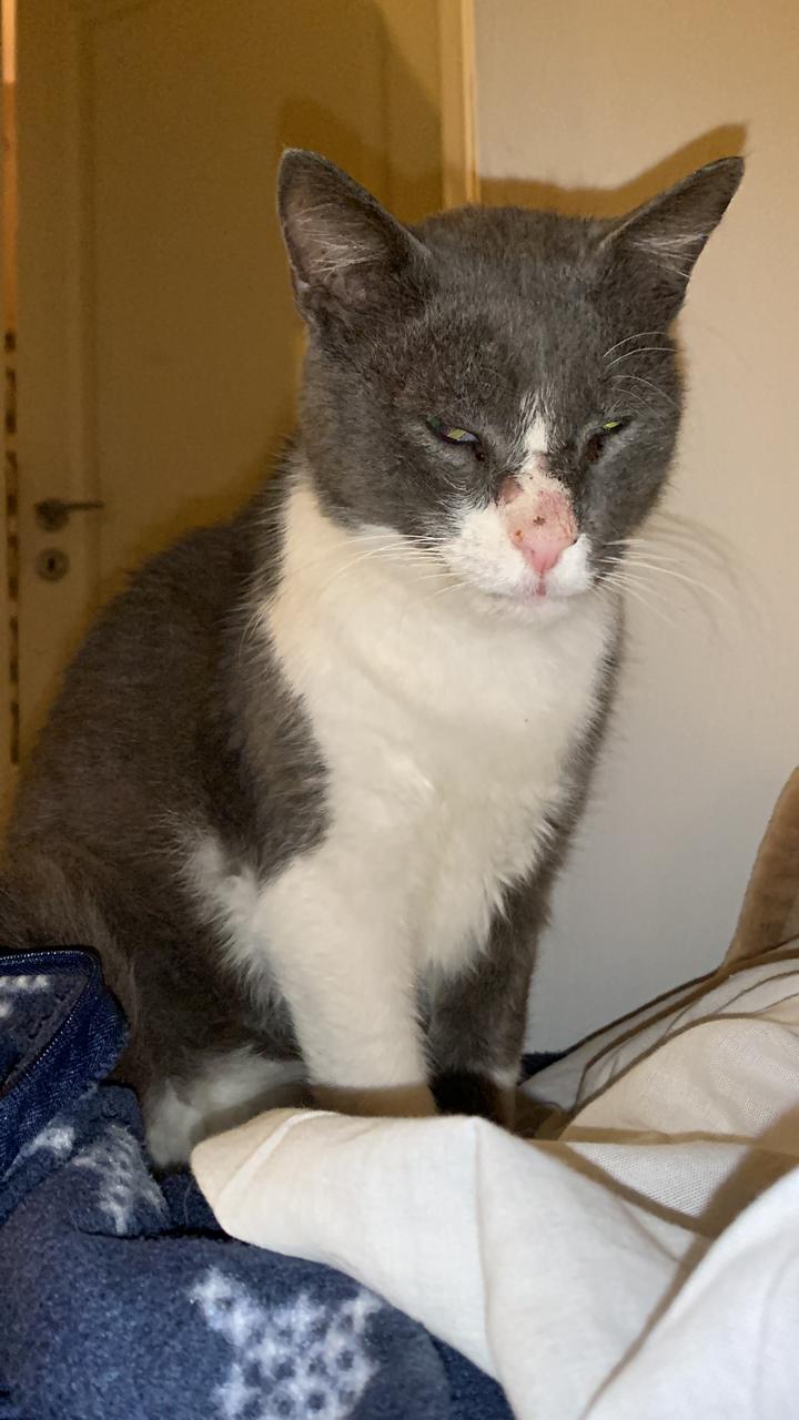 Marco ist ein ca. 2–3 Jahre alter Kater, den unsere Tierschützerin vor zwei Monaten in ganz schlimmem Zustand gefunden hat. Er war schwach, litt unter Schmerzen und hatte kaum eine Chance allein zu überleben.