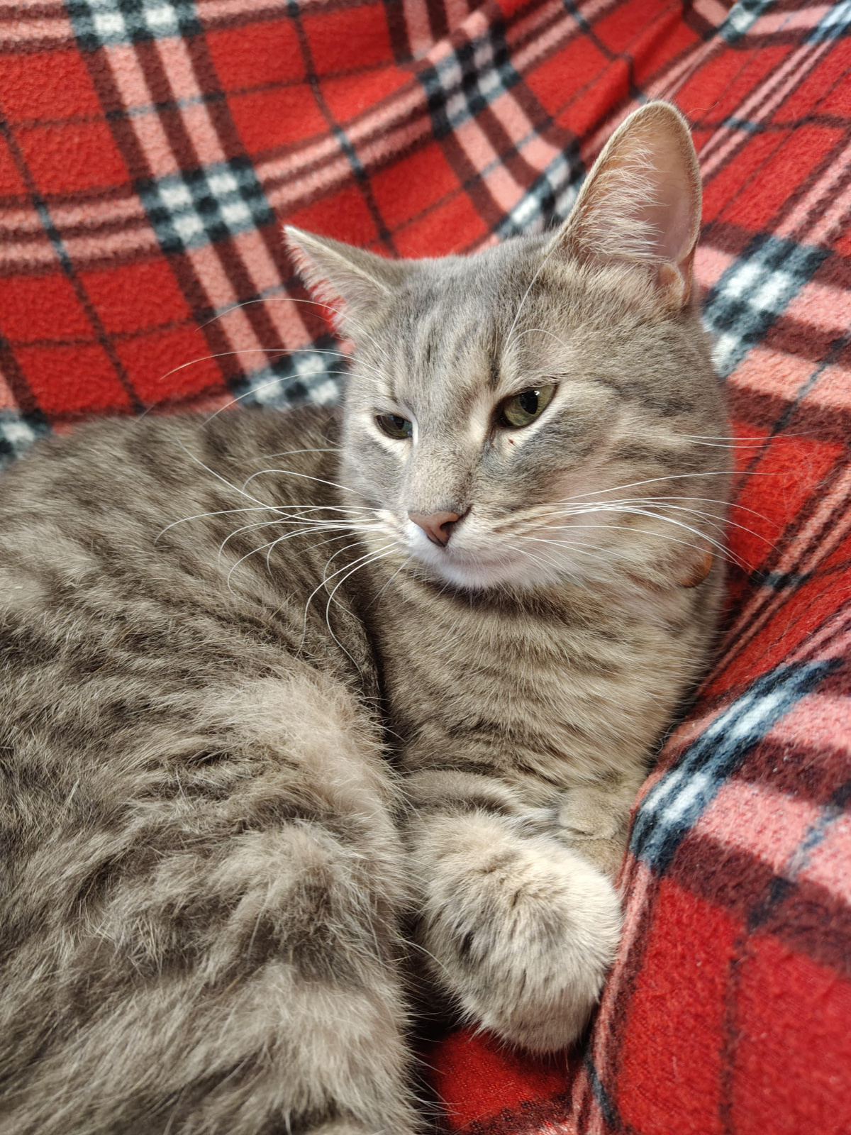 Er sucht Nähe, kommt gerne auf den Arm oder den Schoß.