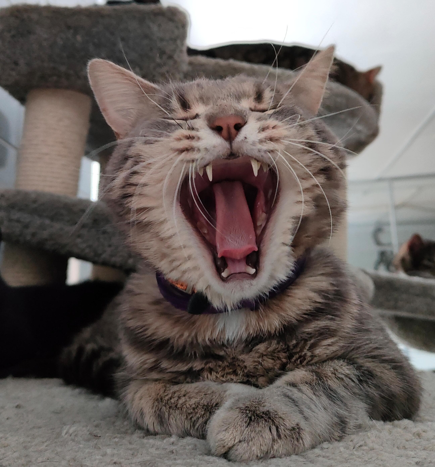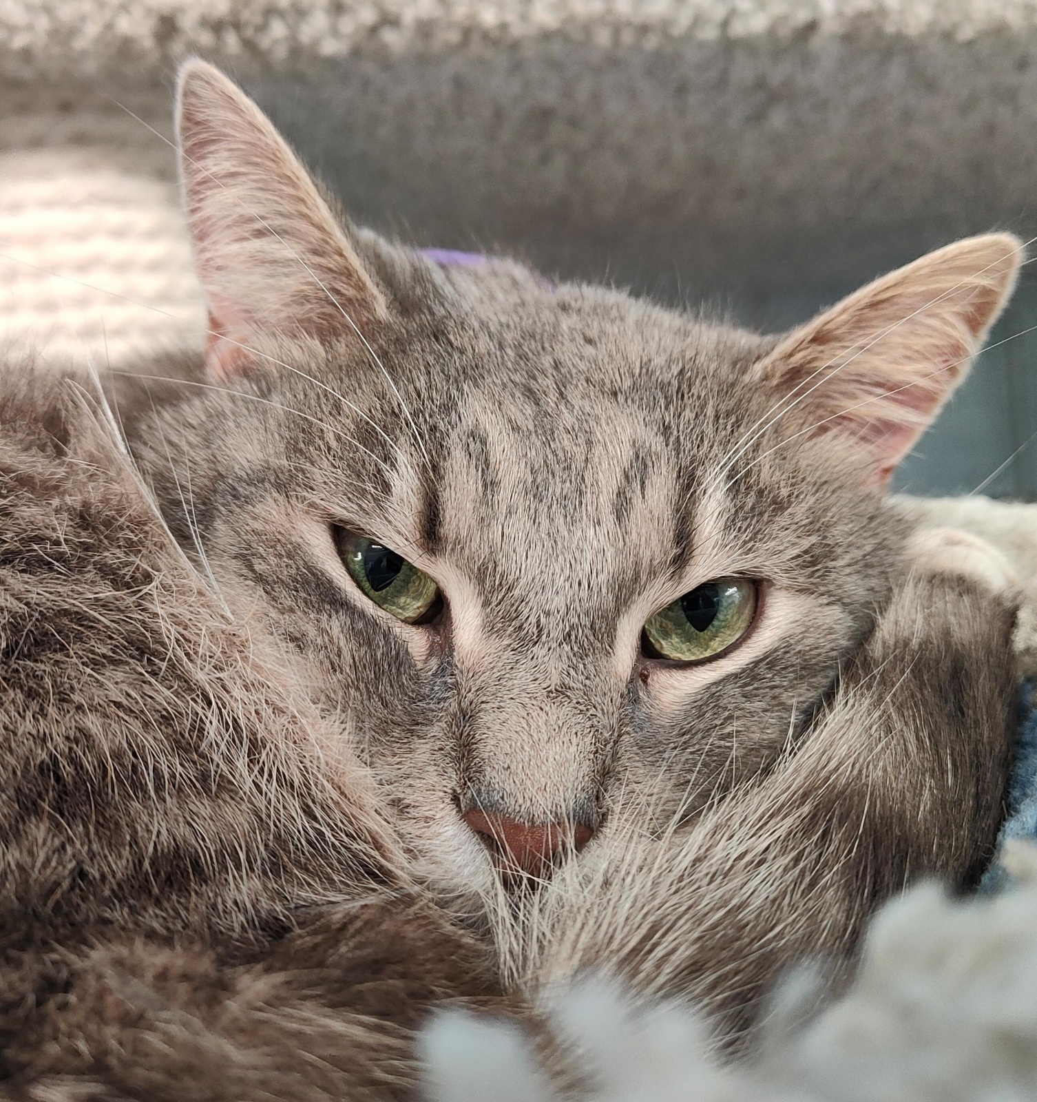 Mit Artgenossen ist Martin nicht einfach. Im Tierheim, wo viele Katzen eng beieinander leben, fühlt er sich schnell bedrängt. Dann knurrt er oder teilt auch mal mit der Pfote aus. Wir glauben aber, dass er mit ein oder zwei Katzen in einem ruhigen Zuhause durchaus auskommen könnte. Nur die große, laute Katzengruppe überfordert ihn.