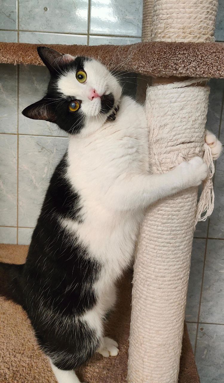Akulеnok wurde im August 2023 geboren und kam schon als kleines Kätzchen ins Tierheim. Viel zu früh musste er lernen, was es heißt, ohne Geborgenheit zu sein. Eine Infektion hinterließ einen kleinen Fleck an seinem Auge – ein stilles Zeichen seiner Vergangenheit, das ihn nur noch besonderer macht.