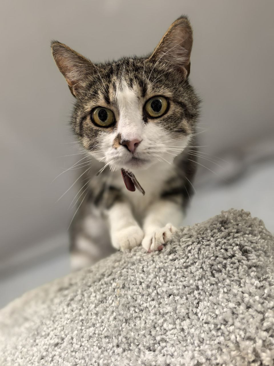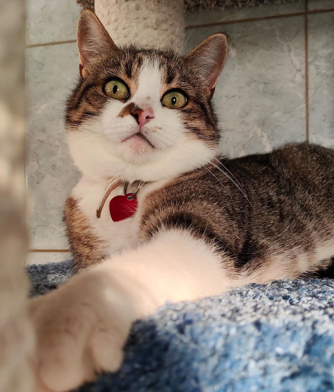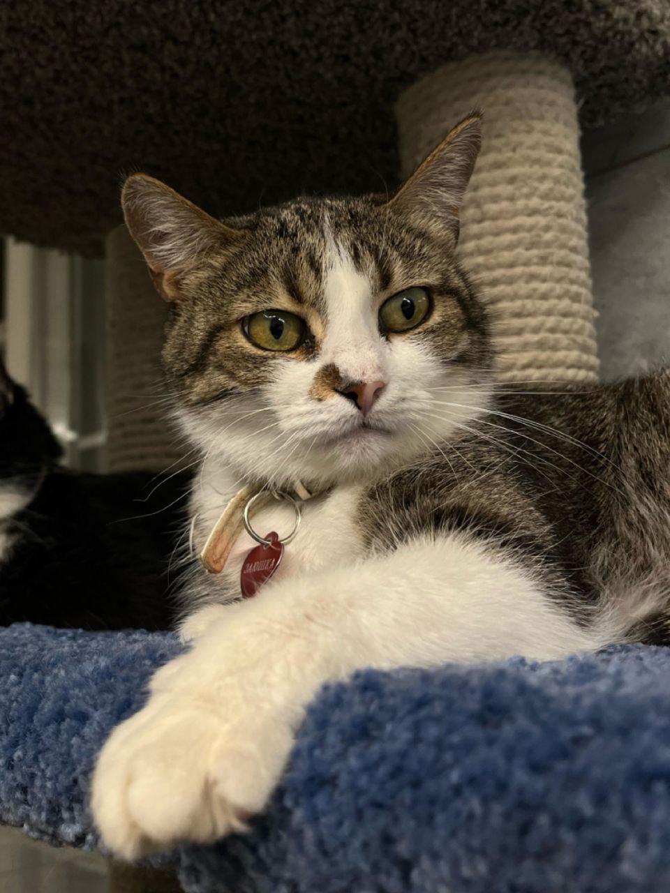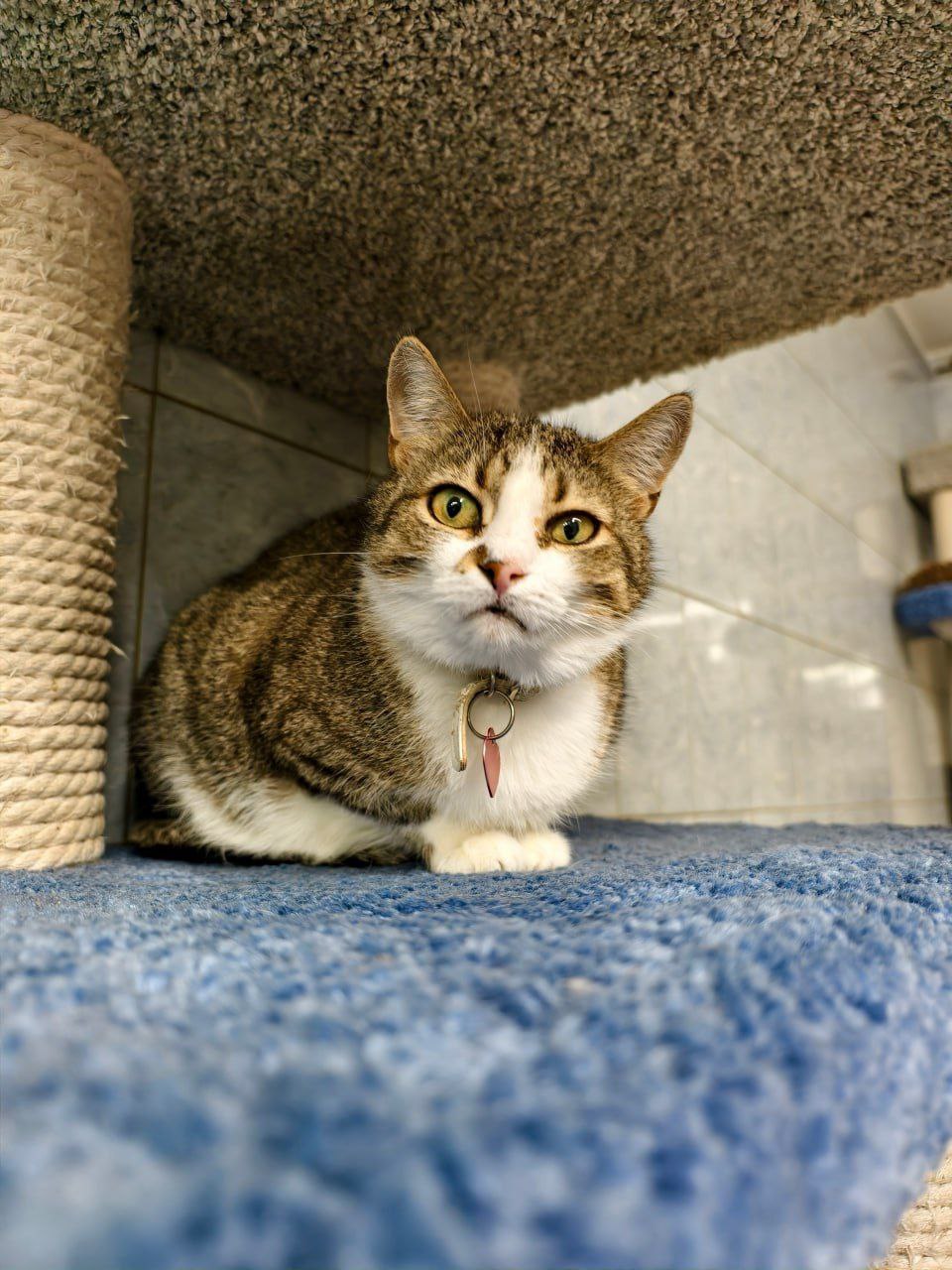 Am liebsten sitzt sie erhöht – auf einem Katzenbett oder der Fensterbank – und beobachtet das Geschehen um sich herum.